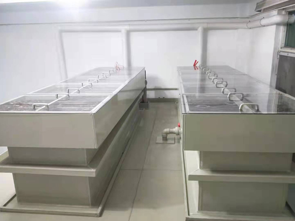 一新式碲電解簡介、現(xiàn)有精碲電解大都使用傳統(tǒng)電解槽。電解時,傳統(tǒng)電解槽的陰極板與側(cè)面碲排的接觸大都為小面積的點(diǎn)接觸,導(dǎo)致接觸電阻大,電解槽壓高,電流效率低;傳統(tǒng)的電解槽只有電解部分不涉及清洗工序,功能有限。傳統(tǒng)的精碲電解槽具有自動化程度低、功能有限、電流效率低、清洗工序環(huán)境污染大、人工清洗效果較差以及成本高等缺陷,不能滿足精碲生產(chǎn)的工業(yè)化需求。