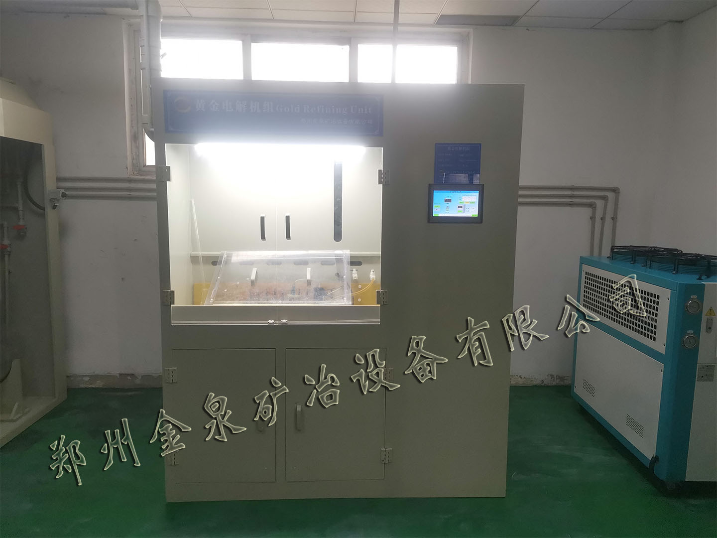 一、產(chǎn)品介紹:專利號:ZL2017 2 1869404.X,金電解機(jī)組是利用電解法將含金量95%以上的粗金提純至99.99%的裝置,用粗金作陽極,鈦片或純金作陰極,氯金酸溶液作電解液,通入直流/交直流疊加電源,使粗金在陽極溶解,純金在陰極析出,達(dá)到提純的效果。
